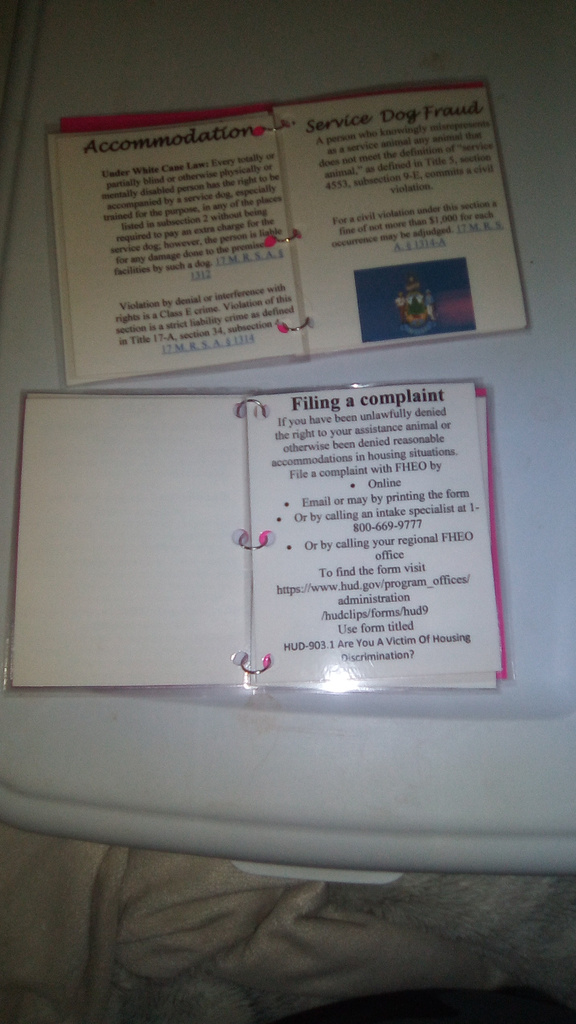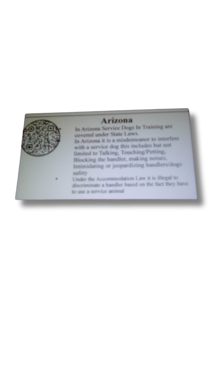 Each booklet has 8 pages of your state's service dog laws. Including pictures, as well as text.